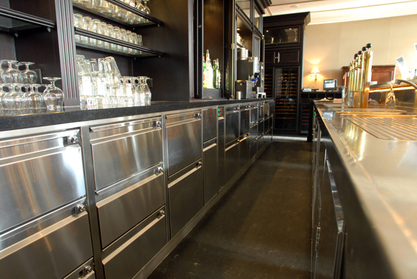 Der Verdampfer bei Getränke-Kühlunterbauten ist beschichtet. Getränke-Kühltheken können mit Eigenkühlung (mit Maschinenfach und eingebautem Aggregat) bezogen werden. Hier ist darauf zu achten, dass genügend Frischluftzufuhr für den Betrieb des Aggregates vorhanden ist (maximale Raumtemperatur beachten). Bei Einsatz mit einer Zentralkühlanlage ist der Korpus wahlweise mit einem Installationsfach oder ohne Installationsfach lieferbar. Für die Service-Zugänglichkeit des Kälteanschluss ist es empfehlenswert, ein Installationsfach einzuplanen. Die Korpusse ohne Installationsfach werden nur bei sehr begrenzter Platzmöglichkeit eingesetzt.