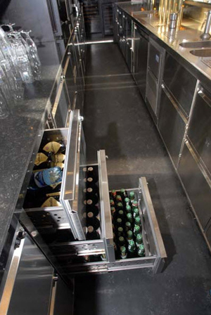 Die Kühltheken mit Höhe 865 mm Höhe werden dort eingesetzt, wo der maximale Platz in der Höhe ausgenutzt werden soll und die Arbeitshöhe von 900 mm überschritten werden kann. Mit Sockel und Abdeckung wird die Höhe des gesamten Korpus ca. 950 mm hoch. Bei Bartheken ist die Arbeitshöhe variabel im Gegensatz zu Einsätzen in Grossküchen. Die Kühltheken sind in 3 verschiedenen Tiefen erhältlich: 580 mm / 680 mm / 800 mm.